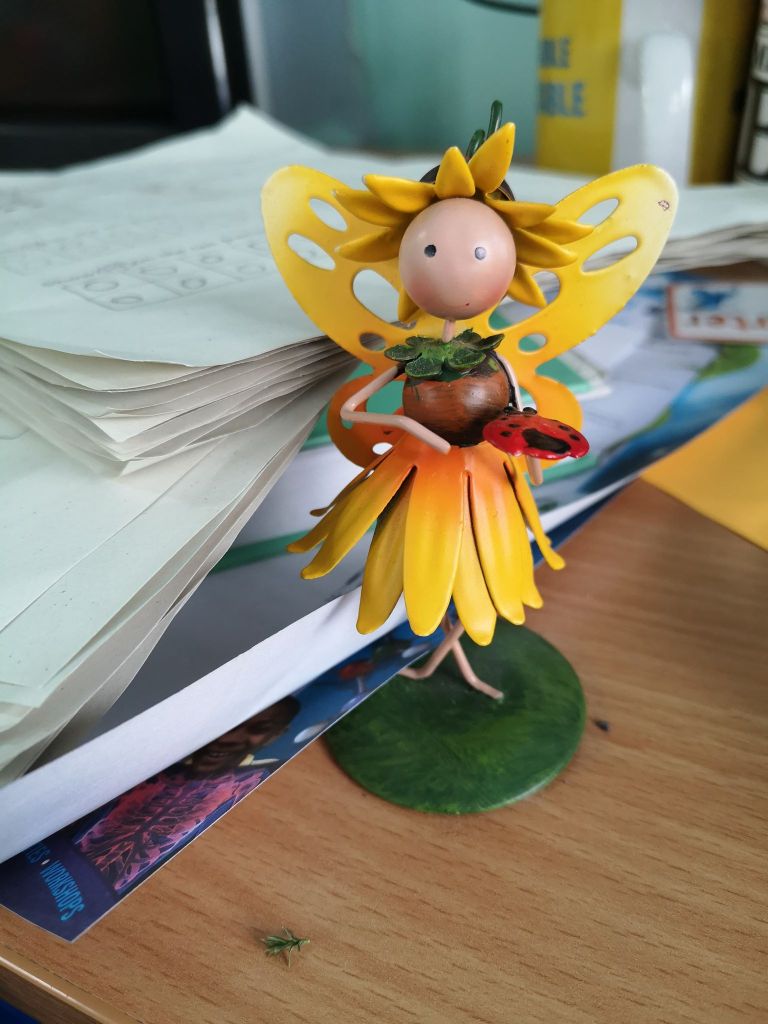 The little fairy propped on the corner of my desk often drew comment, and I took pride in telling that she had been a present from one of my teachers. There followed much speculation over whether the fairy spent every night fluttering around the classroom, only to return to her same resting place each morning.